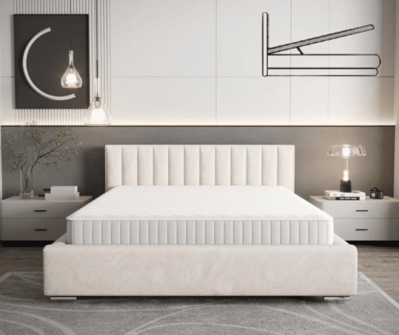 Modern kárpitozott ágy függőleges steppeléssel a fejtámlán, krém színben 180 x 200 cm Ágyneműtartóval, kedvező áron most 335090 Ft-ért. Ismerje meg a Seli kárpitozott ágyat – az elegancia, a kényelem és az egyszerűség tökéletes kombinációja.