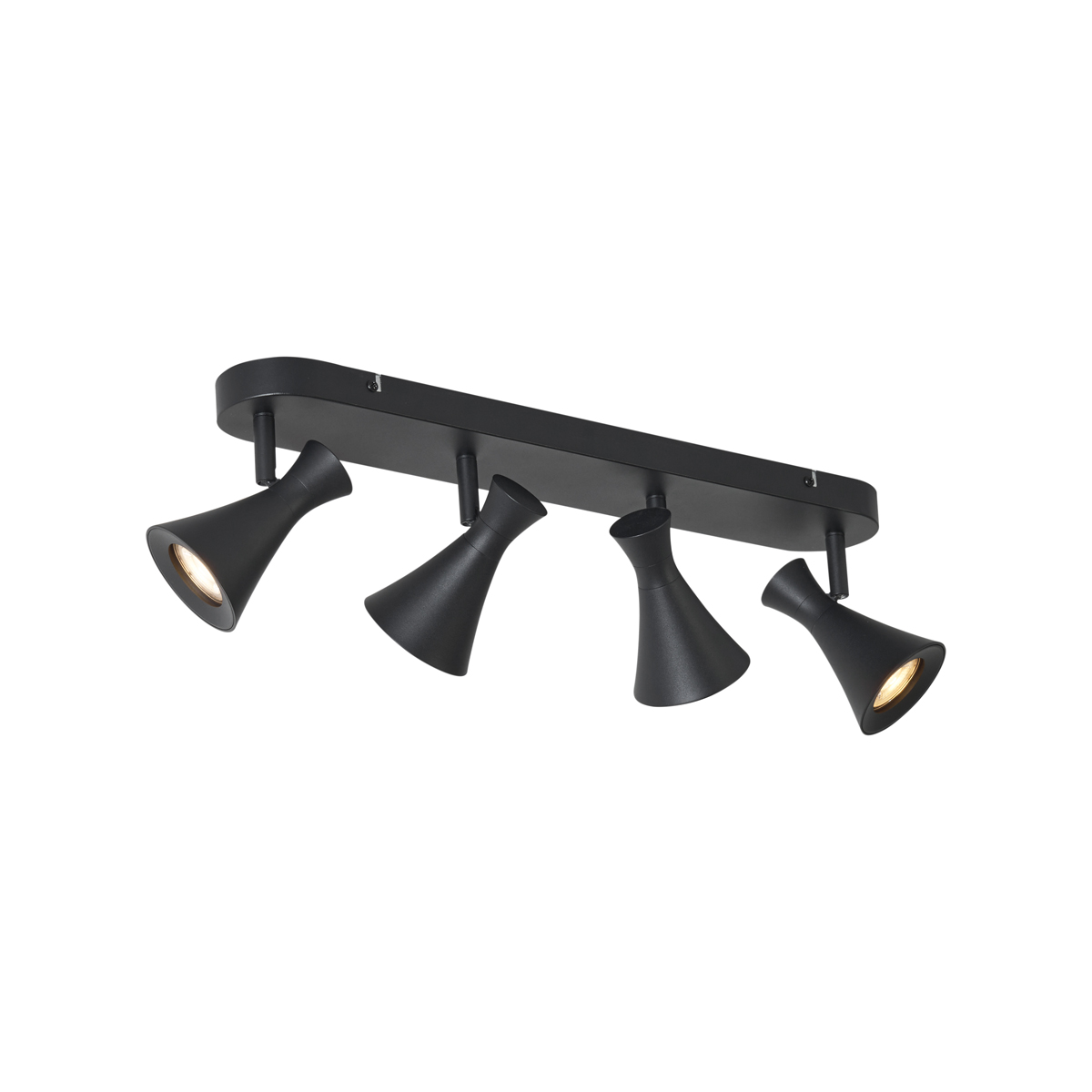 A Triangle 4-lámpás mennyezeti spotlámpa matt fekete színben maximális irányítást kínál a világítás felett. A négy forgatható és dönthető spotlámpával pontosan oda irányíthatja a fényt, ahová szüksége van – ideális nagyobb terekbe vagy több kiemelés létrehozásához. A minimalista dizájn modern, nyugodt légkört teremt.