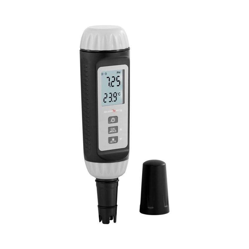 A Steinberg Systems praktikus pH mérőjével gyorsan és egyszerűen ellenőrizheti a különböző folyadékok hőmérsékletét és pH-értékét. Könnyen kezelhető, megbízhatóan és pontosan mér – a víz pH mérő ideális otthoni, iskolai és laboratóriumi, valamint akvarisztikai és gyógyszerészeti használatra. A mért pH-érték és hőmérséklet könnyen leolvashatók a nagyméretű LCD kijelzőről, °C vagy °F mértékegységekben. A magas érzékenységű ph mérő medencéhez 0 és 60 °C között mér ±0,5 °C pontossággal. Használja a pH érték mérőt 0–14 közötti pH-érték-tartományban. A fénypont pedig: a pH teszter rendelkezik Hold funkcióval, amely elmenti a méréseket a kényelmes leolvasás és az értékek későbbi feljegyzése érdekében. A műanyag házzal rendelkező medence pH teszter IP66-os védelmi osztállyal rendelkezik, vagyis az eszköz védett a porral és az erős vízsugárral szemben. A digitális pH mérő könnyű, kompakt és kényelmesen fekszik a kézben. A készülék 2 x 1,5 V-os AAA elemmel működik.