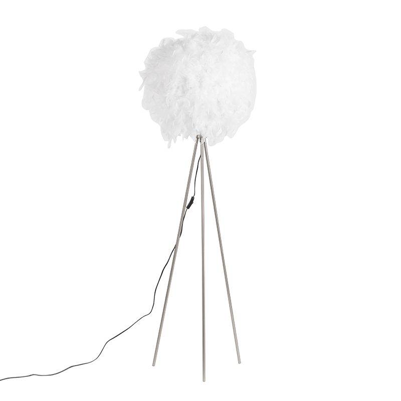 Rusztikus állólámpa acélból, fehér színnel – Feather. Ezzel a feltűnő, tollakkal díszített állólámpával azonnal egy gyönyörű látványosságot varázsolhatsz otthonodba!