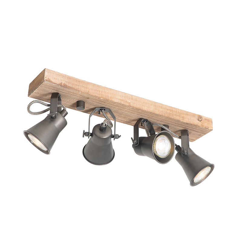 Rusztikus reflektor fekete fával 4-lámpás állítható – Jelle