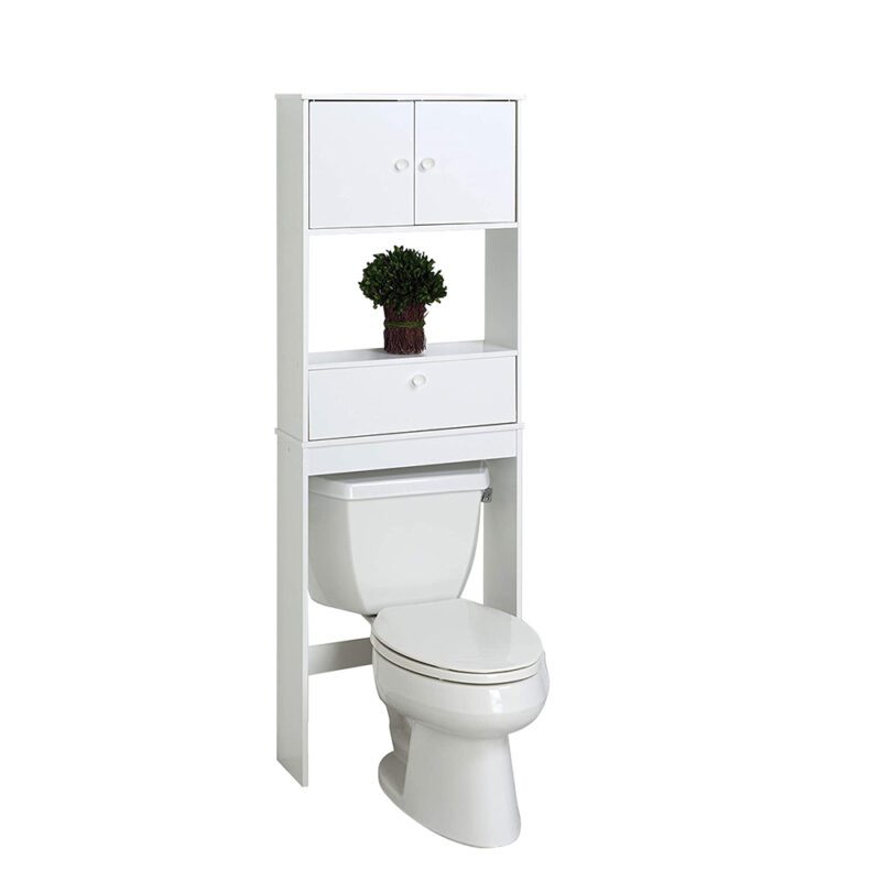 Helytakarékos toalet fölé szerelhető szekrény 3 polccal, letisztult dizájnnal. Praktikus tárolás zárt és nyitott polcokkal, könnyű összeszereléssel.