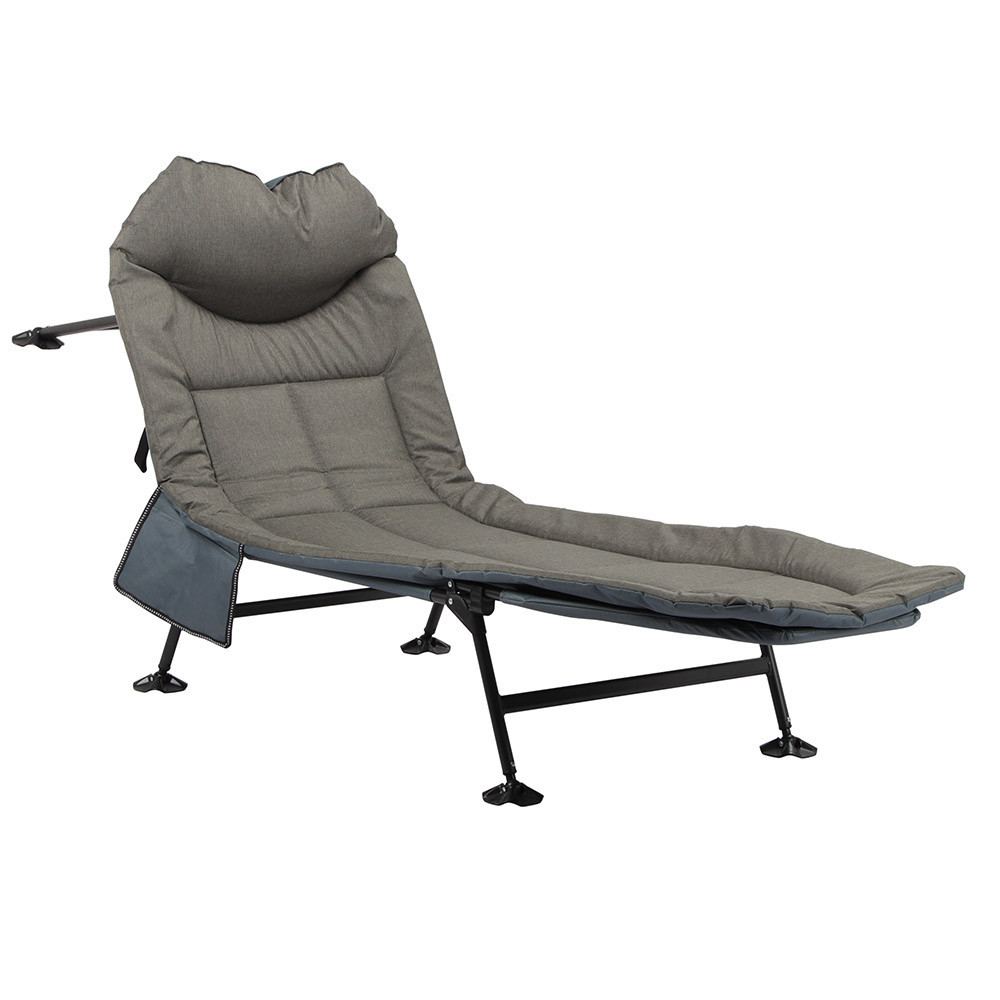 Ez a mobil ágy túrázóknak, horgászoknak és természetjáróknak készült. Összecsukható kialakítása és 4 pozícióban állítható háttámlája ideális a pihenéshez bármilyen terepen. A stabil váz, a 120 kg-os teherbírás és a praktikus zseb garantálja a kényelmet és a funkcionalitást minden helyzetben.