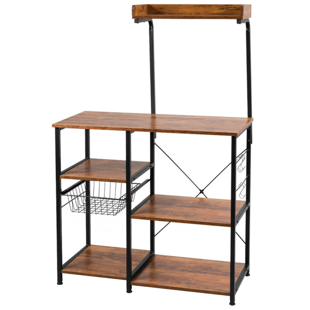 A sötétbarna polcokkal és erős acélvázzal készült tároló állvány dizájnos és jól kihasználható helyet kínál konyhai kellékeid számára. Könnyedén elférnek rajta kisebb gépek, edények vagy hozzávalók.