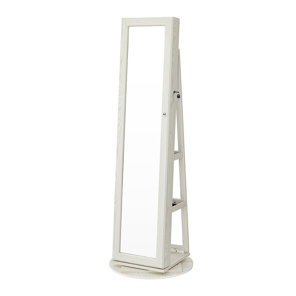 Ez a modern ékszertároló szekrény valódi mindenes: tükör, zárható ékszerdoboz és tárolópolc egyben. A 360°-ban elforgatható kialakítás megkönnyíti a hozzáférést és segít átlátni az ékszerek és kozmetikumok teljes készletét. Letisztult megjelenésének és praktikus belső elrendezésének köszönhetően tökéletes választás hálószobába vagy gardróbba.