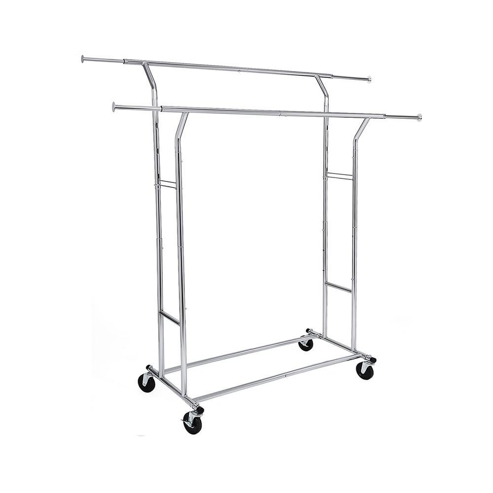Az állítható magasságú és szélességű, ezüstszínű ruhatartó állvány elegáns, tartós és praktikus megoldás otthoni vagy üzleti használatra. Krómozott acélváza akár 110 kg súlyt is elbír, a 4 ipari kerék pedig könnyű mozgathatóságot biztosít. Magassága 148–172 cm, szélessége 129–169 cm között állítható, így rugalmasan alkalmazkodik minden igényhez.