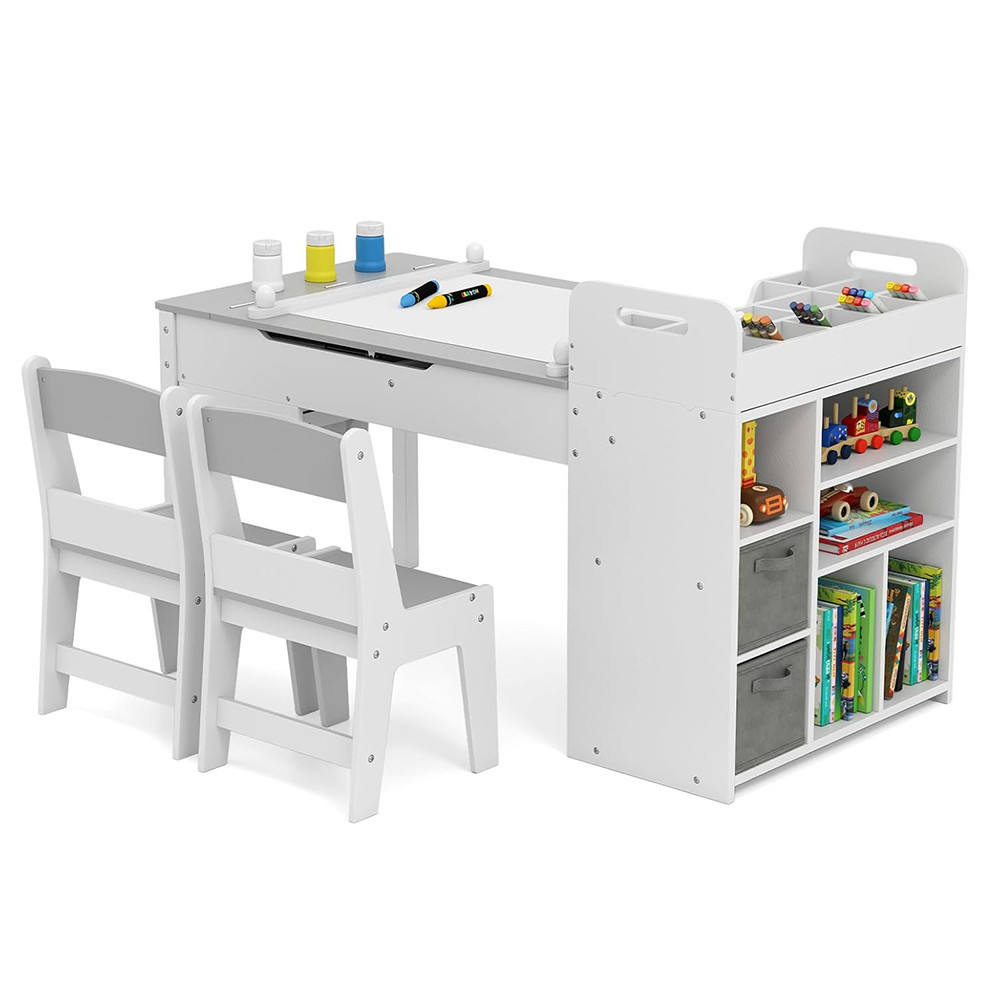 Az asztallap egyszerűen átalakítható festőállvánnyá, így a gyerekek kényelmesen rajzolhatnak vagy festhetnek. Az asztal ugyanakkor alkalmas kézműves foglalkozásokhoz, tanuláshoz, társasjátékozáshoz vagy akár étkezéshez is.