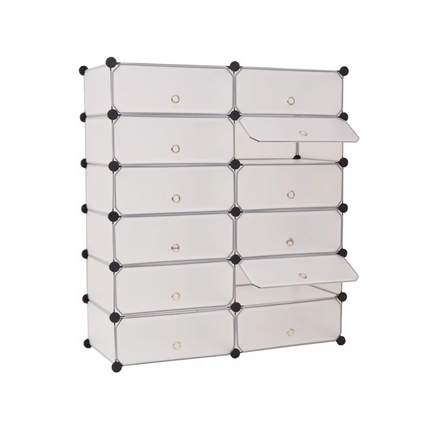 Műanyag elemes cipőtároló szekrényünk rugalmas és helytakarékos megoldást kínál cipőid rendszerezésére. Kétféle formában összeszerelhető, így alkalmazkodik az elérhető helyhez és az egyéni igényeidhez. Akár 12 rekeszt alakíthatsz ki, amelyekben összesen 24 pár cipő tárolható kényelmesen. Előszobába, gardróbba vagy akár egy nagyobb szekrénybe is elhelyezhető.