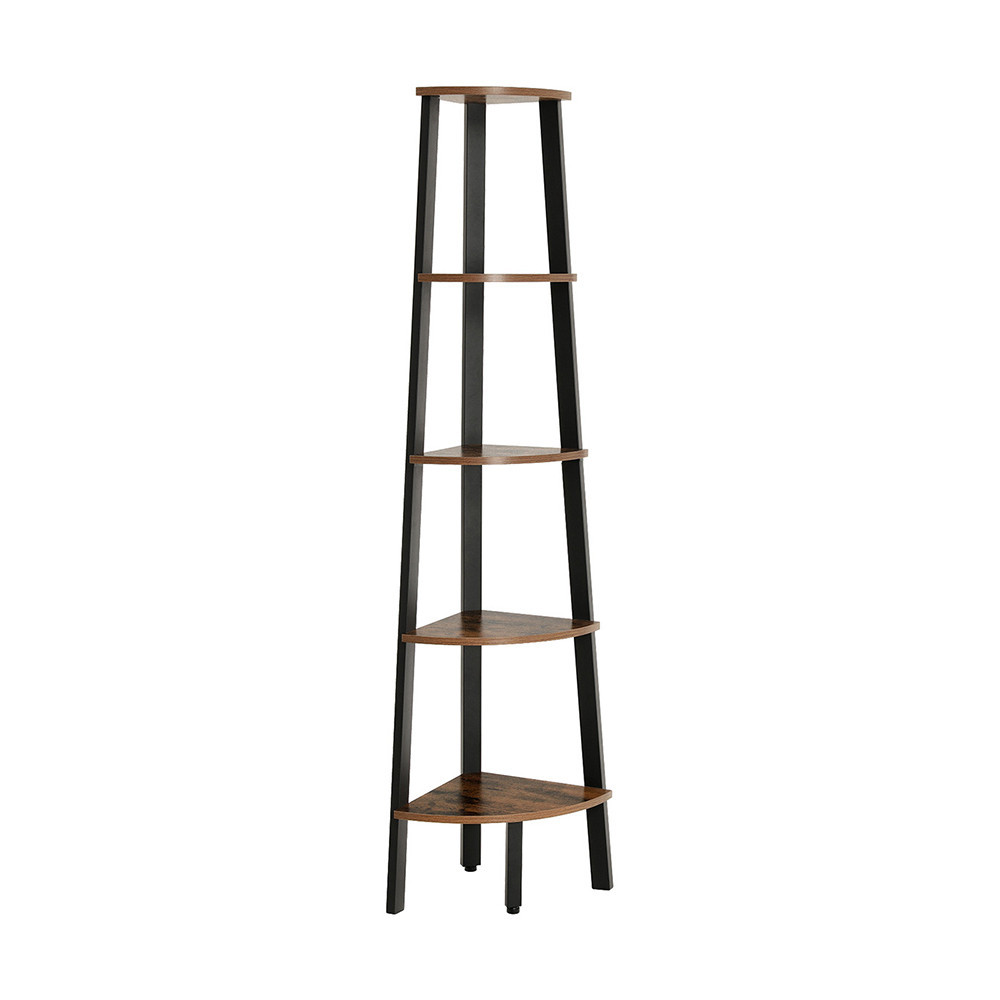 Ez az 5 szintes sarokpolc ipari stílusban ötvözi a rusztikus fa megjelenést a fekete fém vázzal, így egyedi karaktert ad otthonod bármely sarkának. A praktikus, lépcsőzetes kialakítás több tárolóhelyet kínál, miközben a megnövelt magasság kényelmesebb hozzáférést biztosít. A stabil szerkezet, állítható lábak és a dőlésgátló gondoskodik a biztonságos használatról, legyen szó nappaliról, irodáról vagy hálószobáról. Könnyen összeszerelhető, és kis alapterületen is látványos tárolási megoldást nyújt.