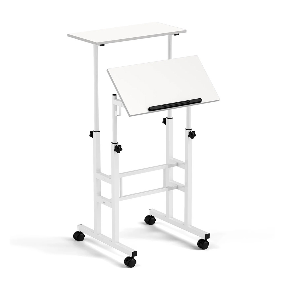 Az állítható magasságú, dönthető asztallappal ellátott mobil állóasztal ideális választás irodába, otthonra vagy tanuláshoz. Ergonomikus kialakítása lehetővé teszi a váltást ülő és álló helyzet között, így növeli a kényelmet és a produktivitást. A masszív fémváz, a 4 görgő – köztük 2 fékezhető –, valamint a két akasztó biztosítják a stabil és rugalmas munkateret.