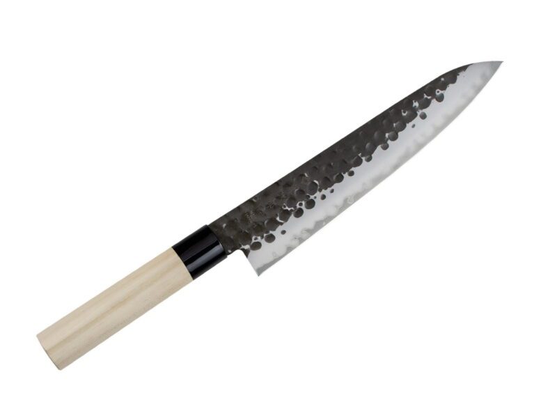 Tojiro Hammered Gyuto F-1116 Szakácskés 24 cm. A Tojiro Hammered F-1116 egy Gyuto típusú japán konyhai kés – egy nagy szakácskés, 24 cm hosszú pengével, japán VG-10 rozsdamentes acélból.