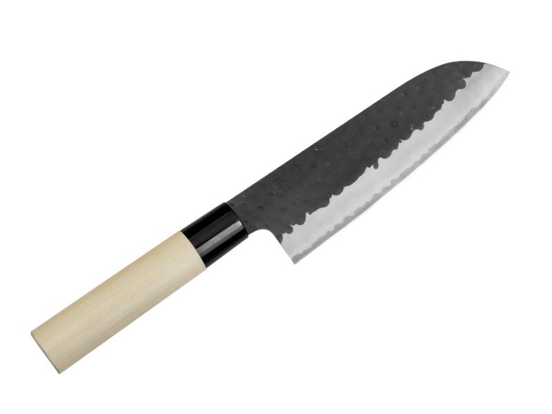 Tojiro Hammered Santoku F-1112 17 cm konyhakés. A Tojiro Hammered F-1112 egy japán santoku típusú konyhai kés 17 cm hosszú pengével, japán VG-10 rozsdamentes acélból.