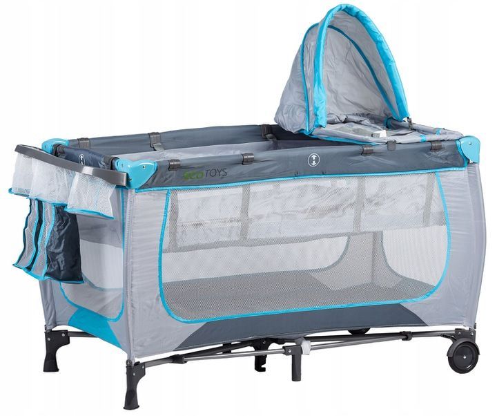 A kiságy szúnyoghálóval van felszerelve, amely véd a rovarok ellen, valamint oldalsó hálókkal, amelyek biztosítják a megfelelő szellőzést, és lehetővé teszik a szülők számára, hogy szemmel tartsák a babát. A fékkel ellátott kerekek megakadályozzák a nem kívánt mozgást, a stabil lábak pedig stabilitást biztosítanak.