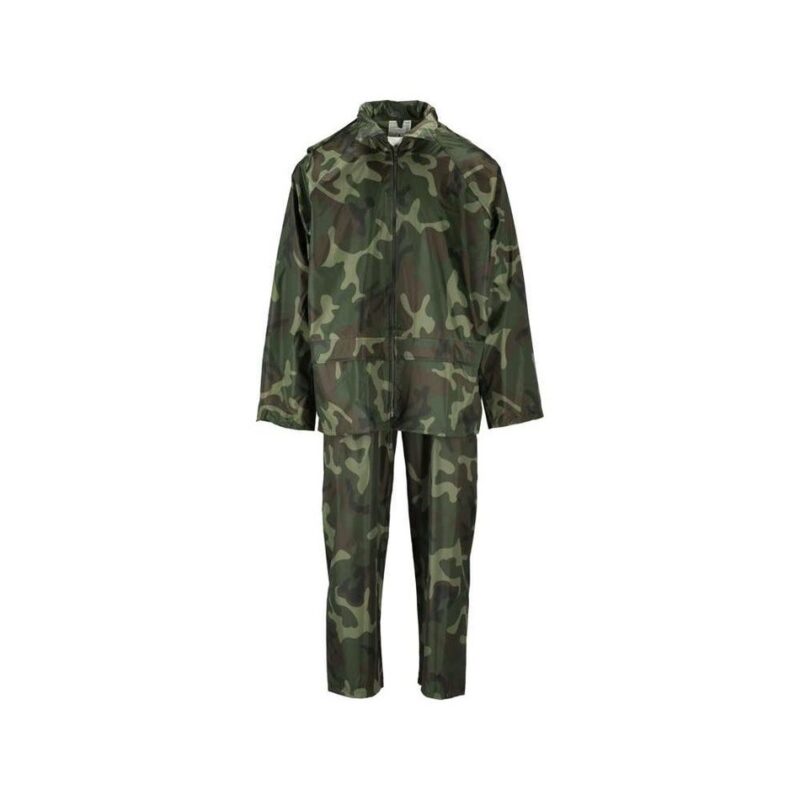 Mascara 2 darabos esőálló nadrág és kabát szett a VOREL-től. Cipzáras kabát két nagy zsebbel és állítható kapucnival, nadrág elasztikus derékszíjjal és az oldalsó nadrágzsebekhez való hozzáféréshez szükséges hasítékokkal. A PVC és poliészter keverék anyaga vízálló és légmentes. A felesleges hő a háton lévő szellőzőnyílásokon és a hónalj alatti szellőzőnyílásokon keresztül távozik az anyag alól. Az XXL-es méret 196-204 cm-es testmagasságnak felel meg.